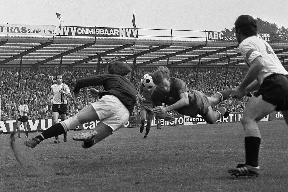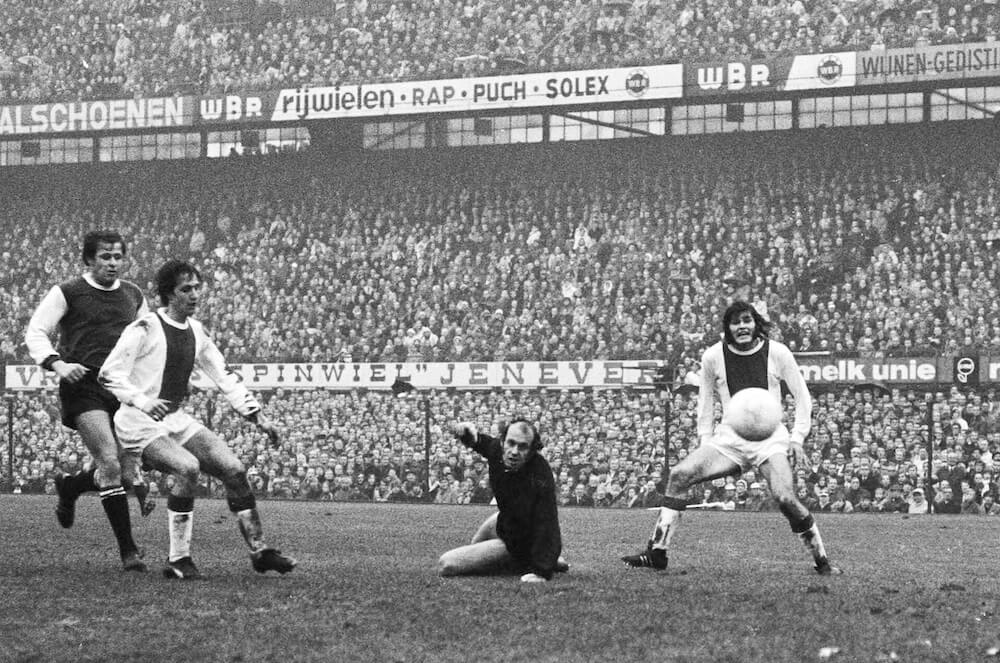 Ajax Bekijk hieronder een selectie van foto’s over dit onderwerp. Bekijk de foto’s Alle foto's Ajax – Soren doet een tukkie op Schiphol. 27 sept.1976 op weg voor UEFA-duel in Engeland Ajax – JOHAN TRAINING UITVERGROTEN RES BEW NEESKENS – kop tegen kop met Keeper De Jong Sept 1973. NAC – AJAX 2-3 UITVERGROTEN AKTIE Ajax – Naar Sofia voor een Europacup wedstrijd – 6 nov 1972 Ajax – Dick van Dijk en Johan vertrek Schiphol voor EC duel tegen Arsenal 20 Maart 1972 met Engelse krant Ajax – Feyenoord – Ajax Cruijff scoort Trytel kijkt de bal na 20 Dec 1970 – 1-1
