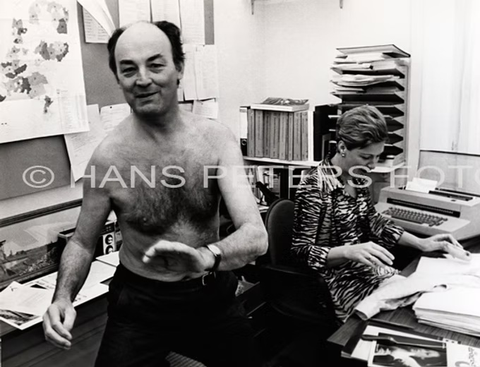 – ABINETSFORMATIE -Terlouw wordt door Peters gestoord terwijl hij zijn krantje leest en de formatie de verkeerde kant opgaat. Oktober 1977